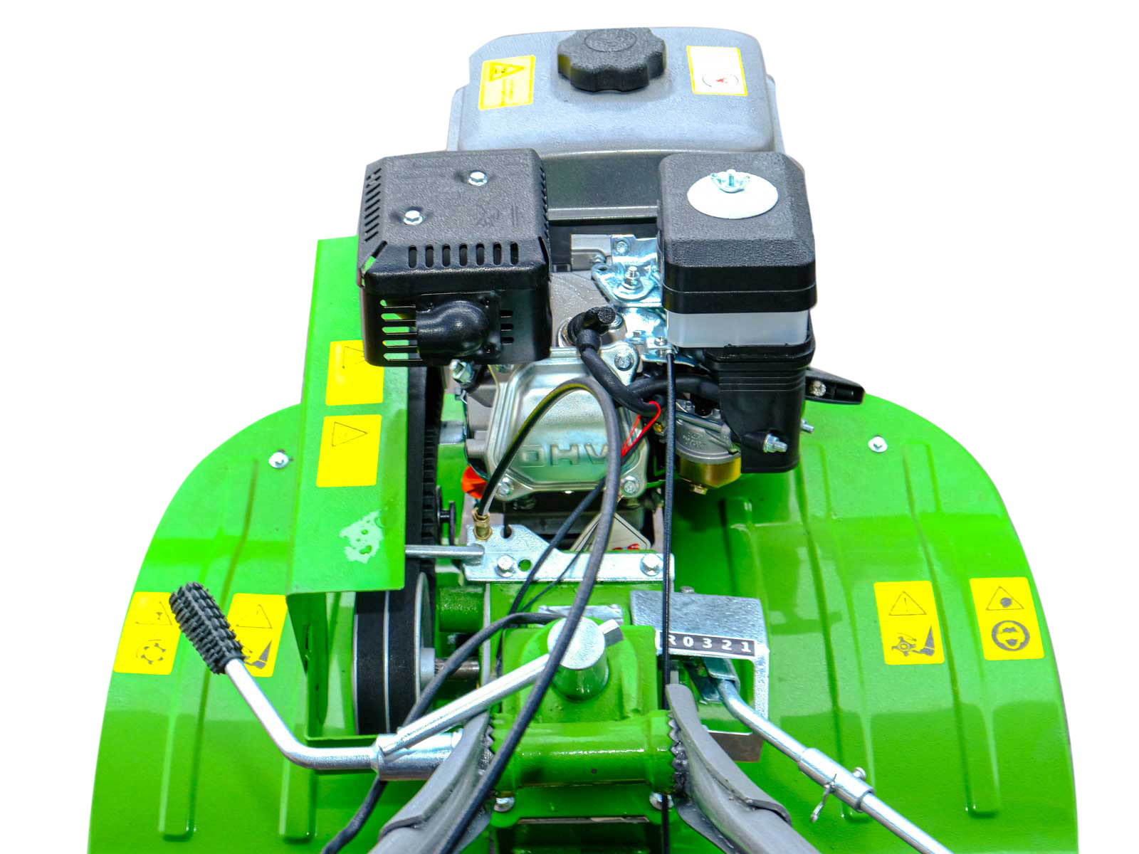Прекрасно подходит для использования на дачных участках. Мощный бензиновый двигатель с активным воздушным охлаждением способен выдержать заничительные нагрузки.