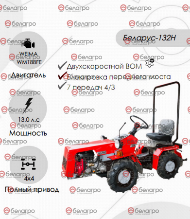 Мини-трактор Беларус-132Н (дв. WEIMA WM188FE 13 л.с)