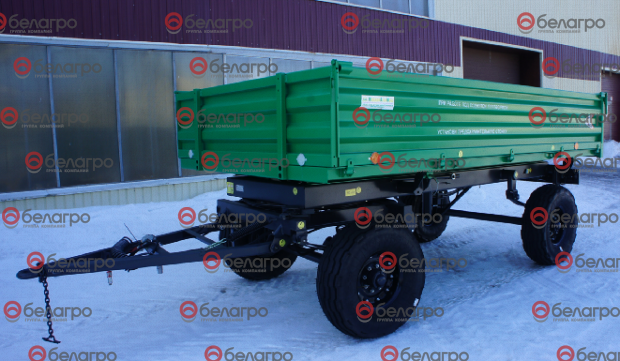 Прицеп тракторный самосвальный предназначен для перевозки различных сельскохозяйственных и промышленных грузов по всем видам дорог и в полевых условиях. Разгрузка прицепов трехсторонняя, что позволяет производить разгрузку практически в любых условиях и ситуациях. Наличие поворотного круга на передней оси придает прицепам большую маневренность. Практичность и неприхотливость конструкции делают прицепы простыми в эксплуатации. Прицеп агрегатируется с колесными тракторами тягового класса 1,4–2,0 т, оборудованными раздельно-агрегатной гидросистемой, имеющими тягово-сцепное устройство по ГОСТ 2349, а также выводы для подключения тормозной пневмосистемы и электрооборудования