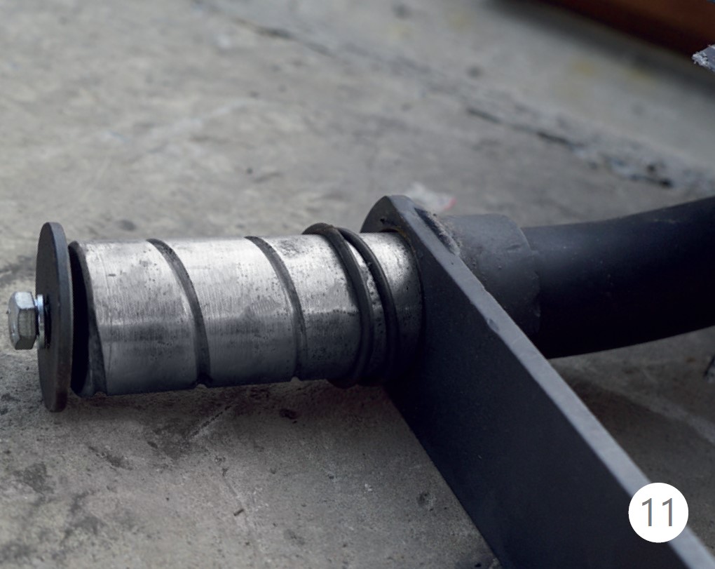 10. Изогнутые стойки (диаметром 58,5 мм, сталь 45) с усиливающей втулкой, которая защищает стойку от срезания.