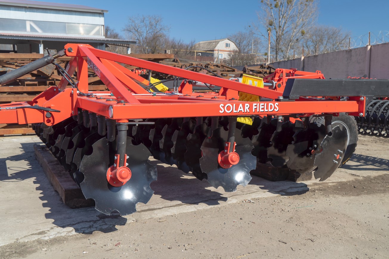 Сферические диски SOLAR, диаметром 560 мми толщина 6 мм с двойной заточкой, выполняют роль лемеха и отвала, что способствует лучшему обороту срезаемого пласта и его крошению.