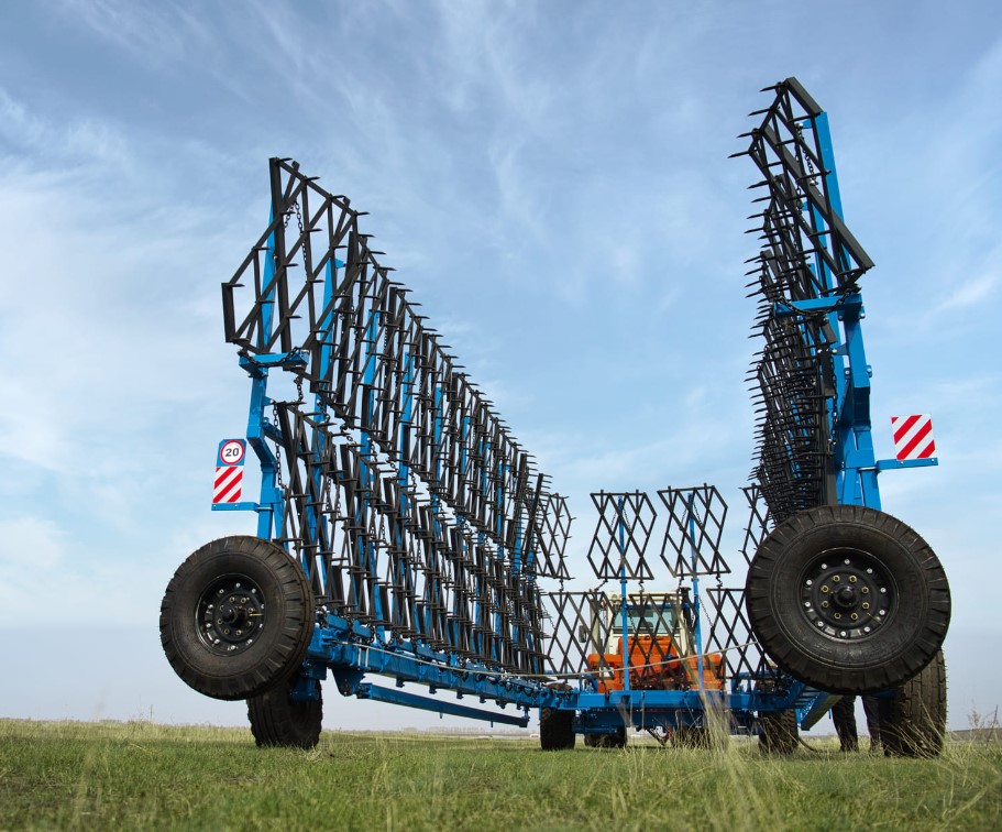 Перевод из рабочего положения в транспортное и обратно выполняется одним трактористом с помощью гидравлического привода и механизма фиксации жесткой сцепки. Операция по подготовке бороны к работе или транспортировке - занимает не более 5-ти минут и может быть выполнена одним механизатором.