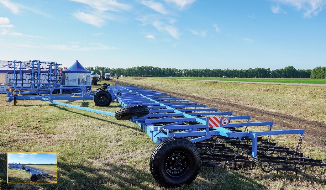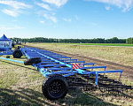 Сцепка зубовых борон гидрофицированная ЗАРЯ СБГ-26-2 обрабатывает почву на глубину до 8 см. Рыхлит, выравнивает поверхностный слой почвы, с одновременным распределением пожнивных остатков. Ширина захвата сцепки — 26 м. Производительность 30 гектаров в час.