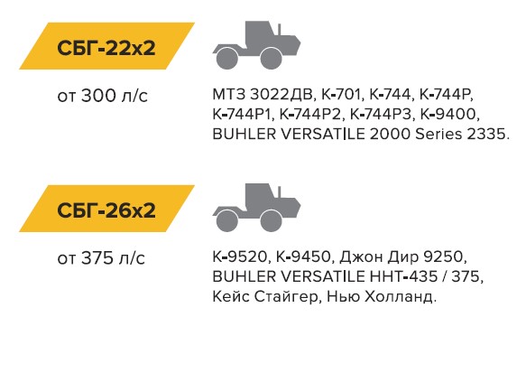 Агрегатируется с тракторами мощностью от 400 л.с.: К-9400, К-9520, К-9450, John Deere 9250, Case Steiger и др.