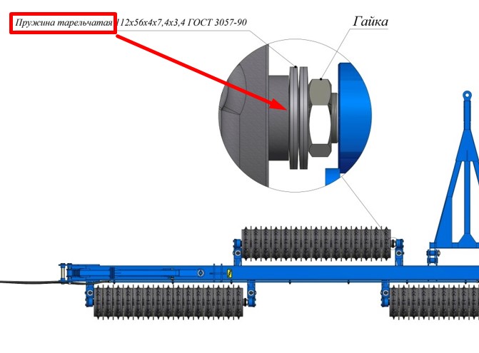 Рабочими органами катка являются диски и кольца зубчатые. Взаимное перемещение колец относительно дисков позволяет самоочищаться секциям катка от налипания влажной почвы.