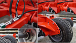 9. Опорные колеса. 4 опорных колеса расположены перед рабочими органами. • исключает налипание земли при работе на переувлажненной почве; • равномерно держит глубину обработки почвы по всей площади культиватора; • 100%-е перекрытие культиваторными лапами.
