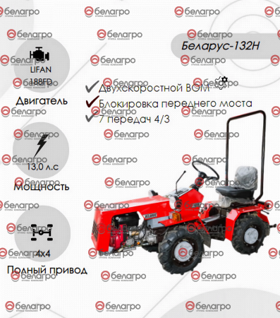 Мини-трактор Беларус-132Н (дв. LIFAN 188FD 13 л.с)