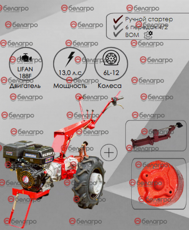 Мотоблок Беларус-012WM (дв.LIFAN 13л.с.)+СЦ-00010 сцепка универсальная