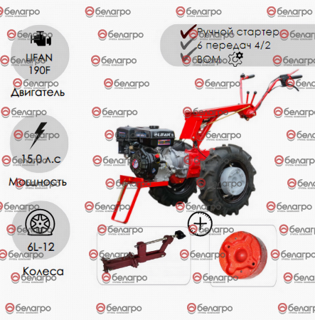 Мотоблок Беларус-012WM (дв.LIFAN 15л.с.)+СЦ-00010 сцепка универсальная