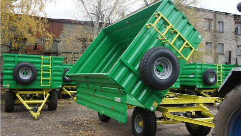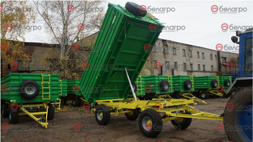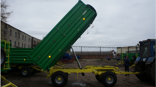 Прицеп тракторный самосвальный предназначен для перевозки различных сельскохозяйственных и промышленных грузов по всем видам дорог и в полевых условиях. Разгрузка прицепов трехсторонняя, что позволяет производить разгрузку практически в любых условиях и ситуациях. Наличие поворотного круга на передней оси придает прицепам большую маневренность. Практичность и неприхотливость конструкции делают прицепы простыми в эксплуатации.Допускается перевозка сыпучих строительных грузов, за исключением скальных пород и булыжника. Свал груза с платформы – на три стороны. Прицеп предназначен для эксплуатации с колесными тракторами классов 1,4–3,0 т, имеющими раздельно-агрегатную гидросистему, тягово-сцепное устройство по ГОСТ 3481, а также выводы для подключения пневматической тормозной системы по ГОСТ 4364, электрооборудования по ГОСТ 9200 и гидросистемы. Максимальная скорость движения – 35 км/ч.
