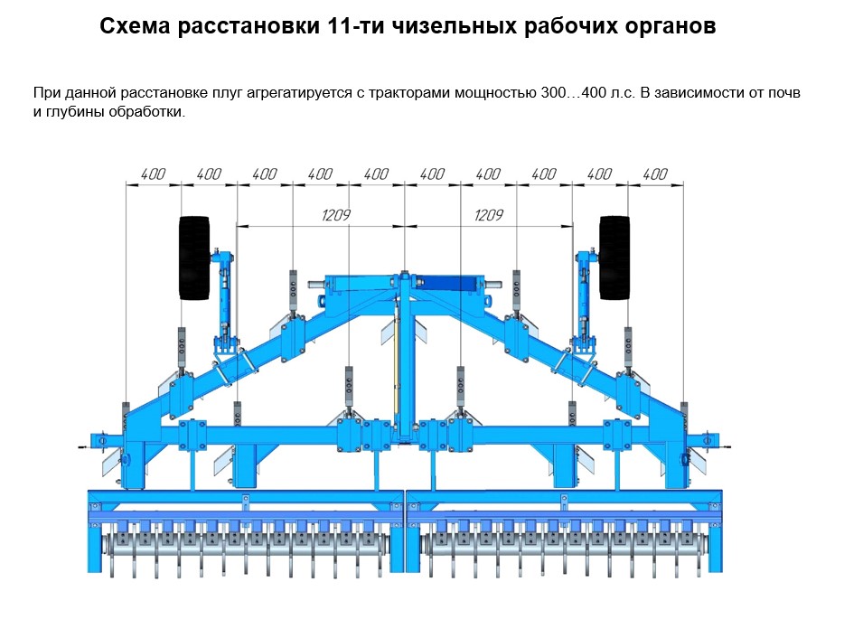 | Требуемая мощность трактора, л.с. | 300 |